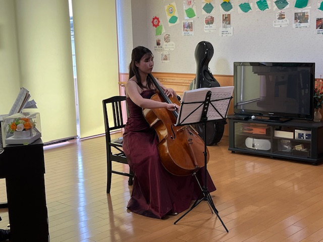 お知り合いのチェリストの方と一緒にミニコンサートを開いてくださいました(*´▽`*)
